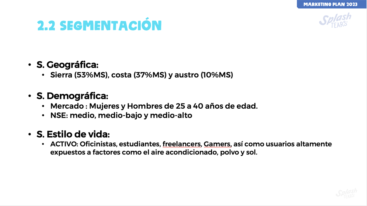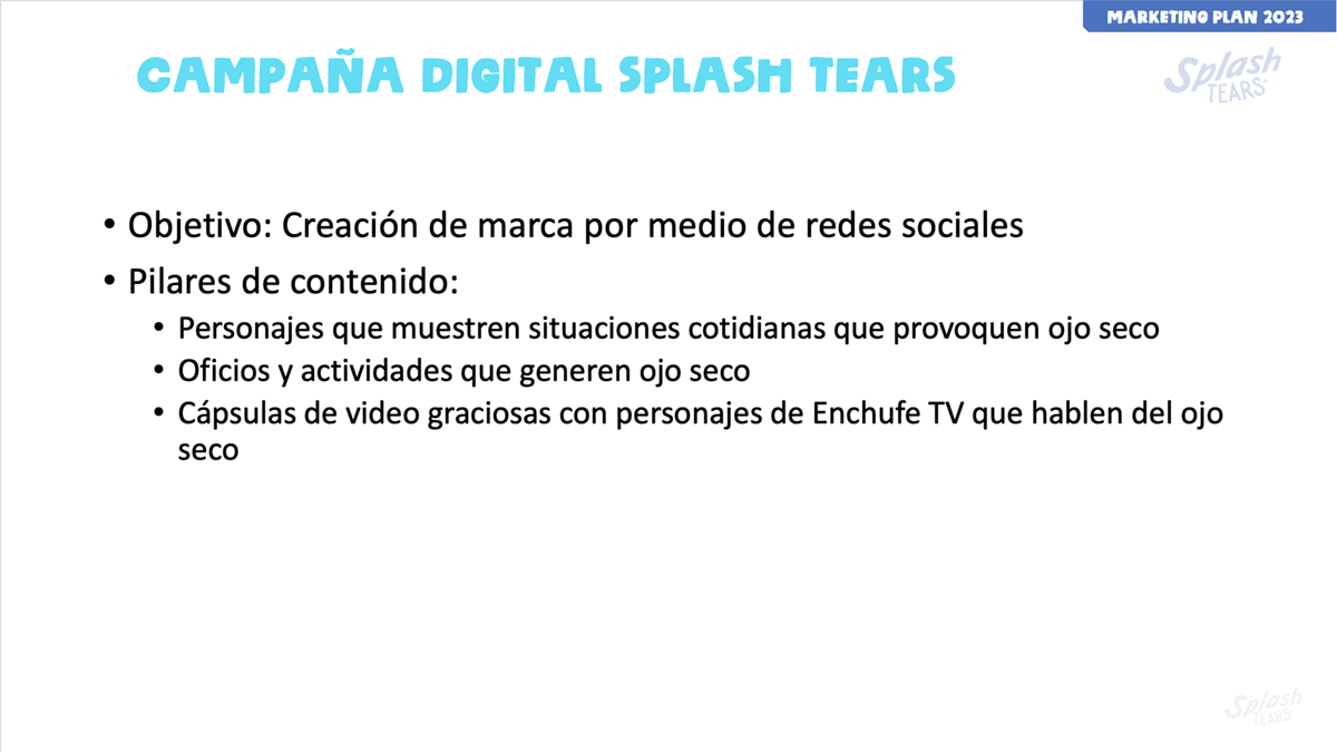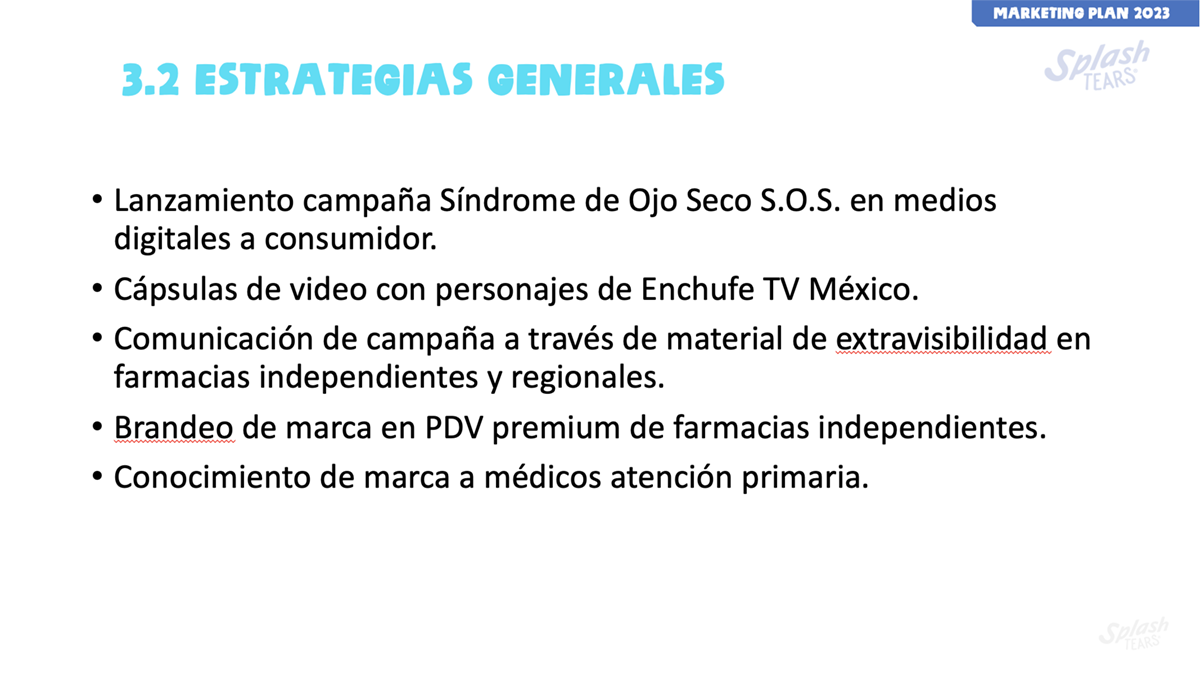 Update a slide presentation for the 2023 launch of Splash Tears, a brand of eye drops manufactured by Laboratorios Sophia in Mexico